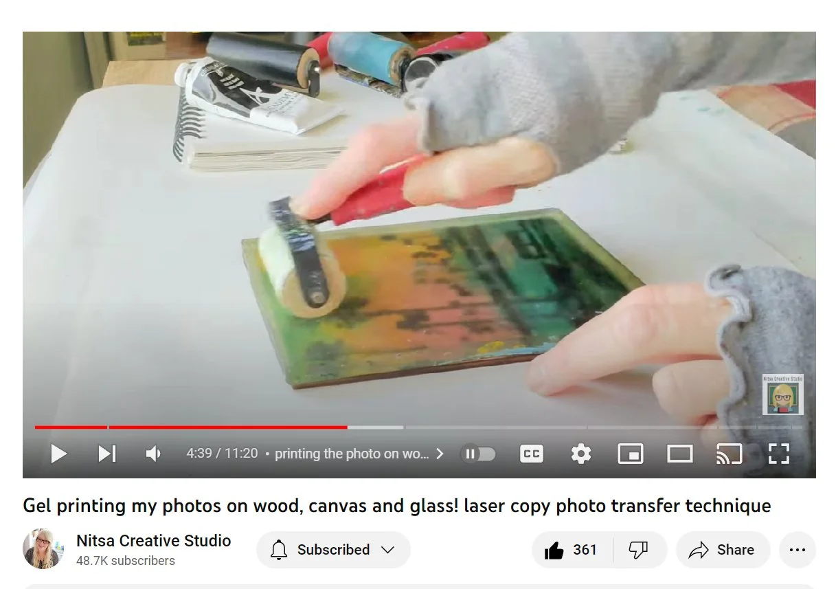 Tutorial videos with step by step instructions, easy to follow on topics such as image transfer, gel printing photos and art journaling.